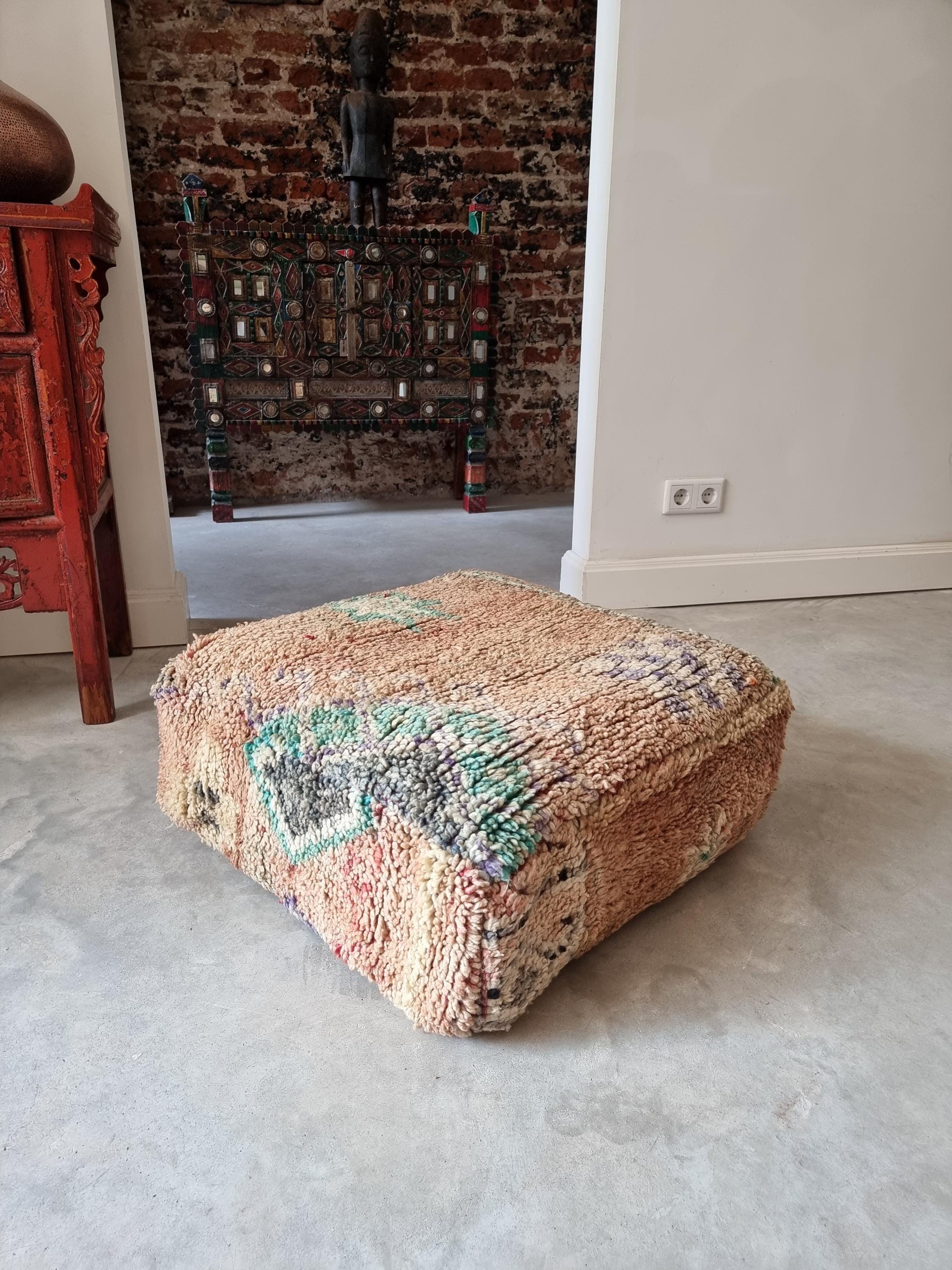 Beautiful vintage boujaad Kilim floor pillow / pouf