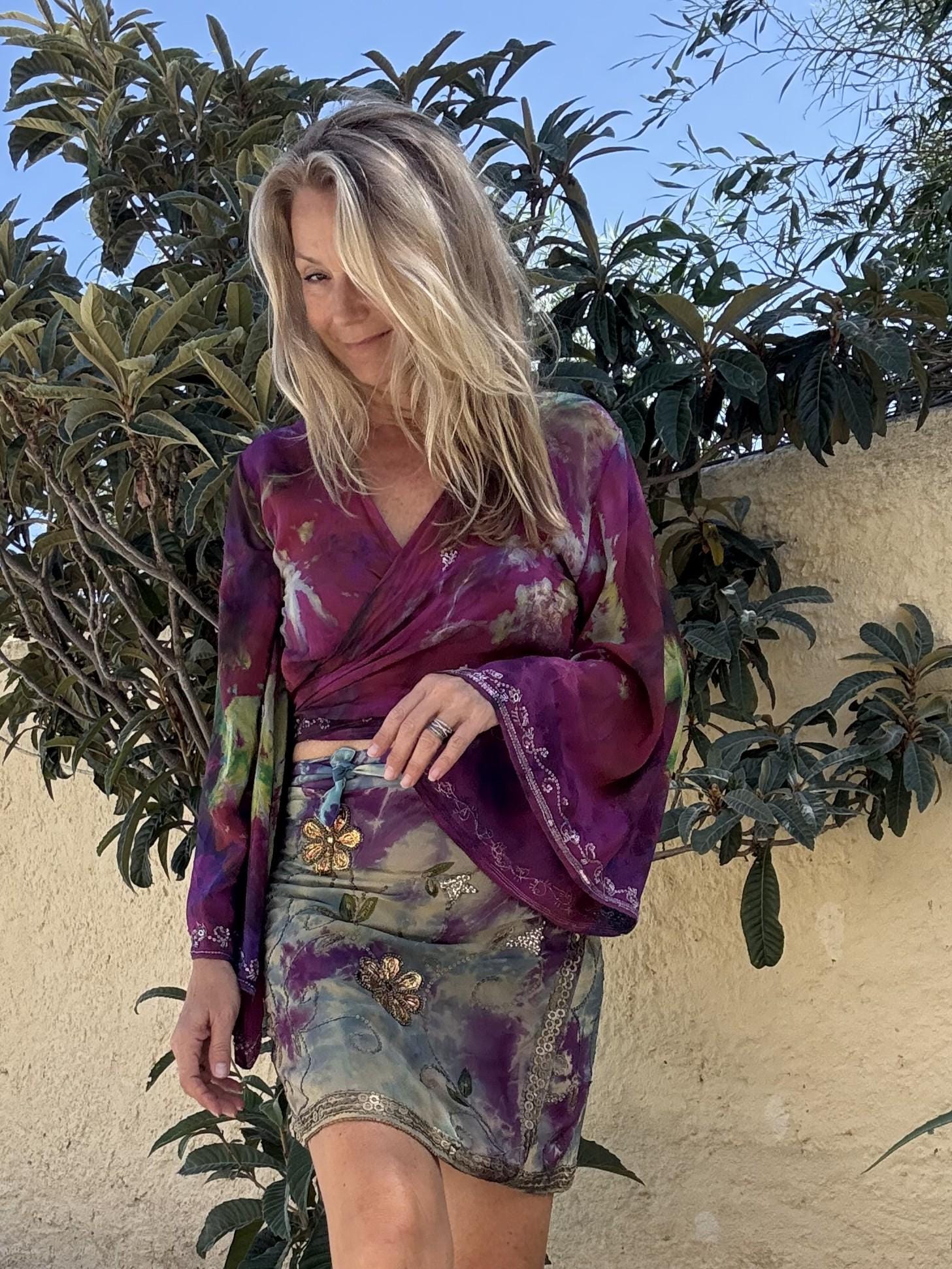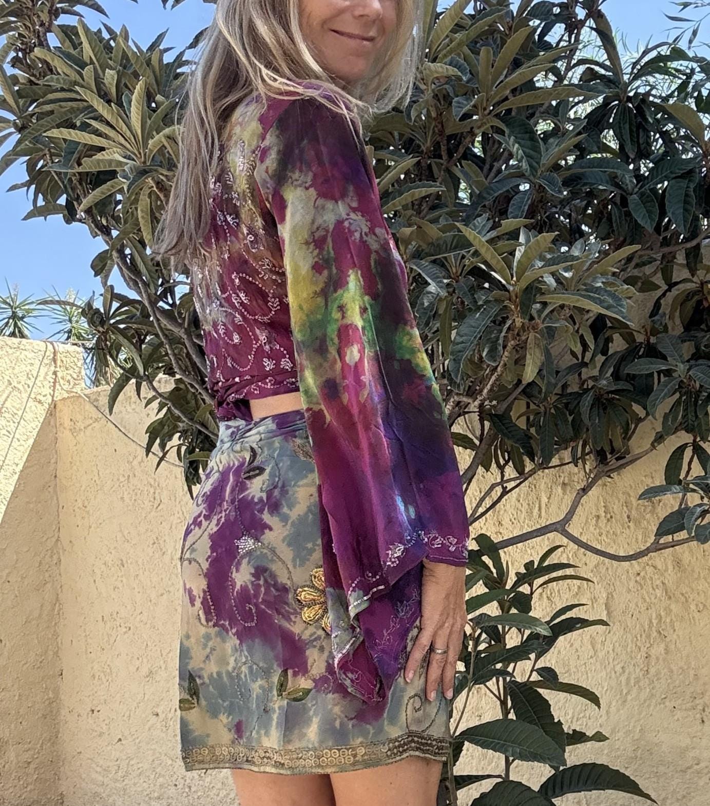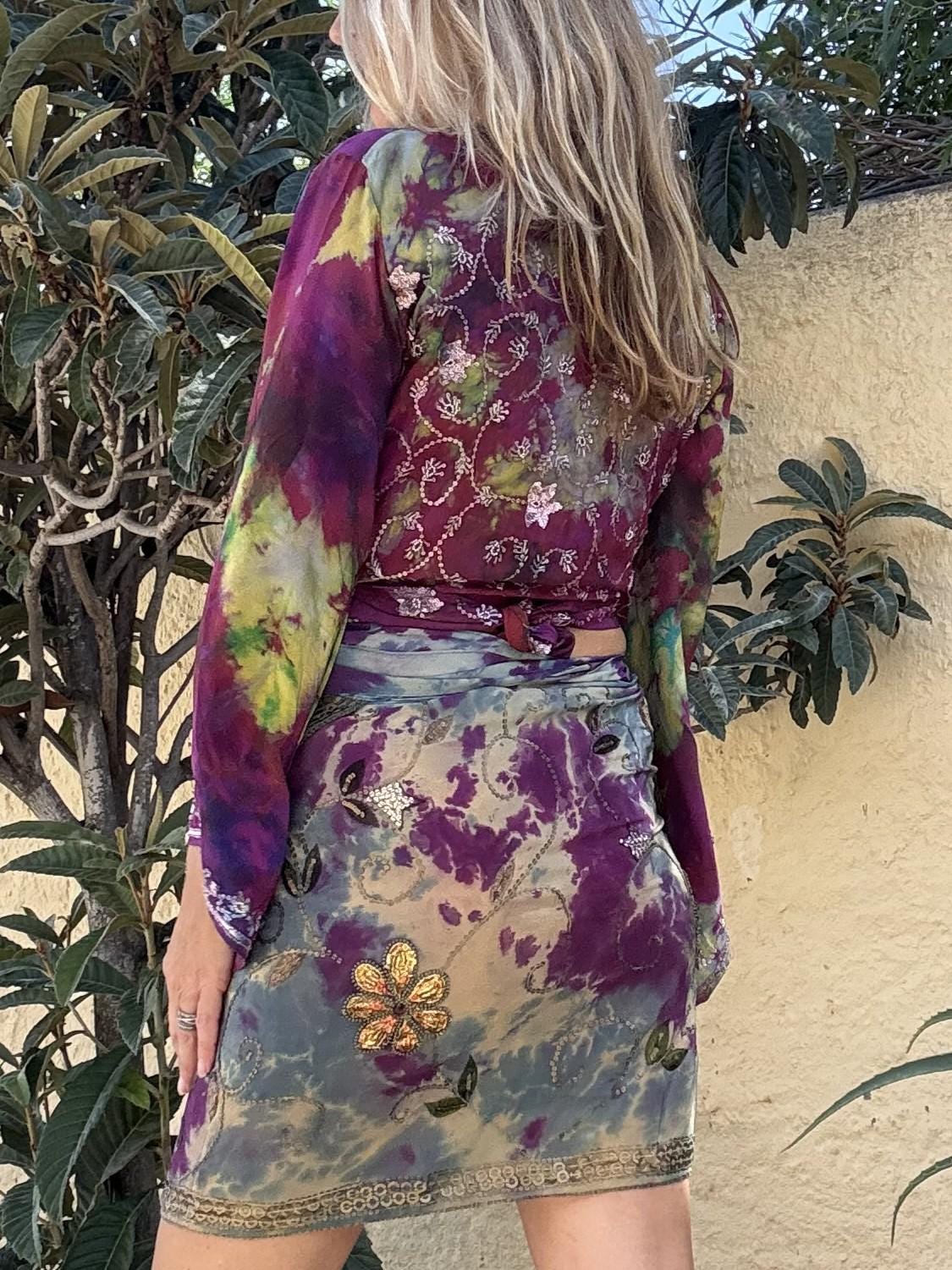 Handmade recycled Sari wrap top with bell sleeves with lots of sequins and embellishments Dress it up with on a dress, or dress it down on a jeans, depending on the occasion.