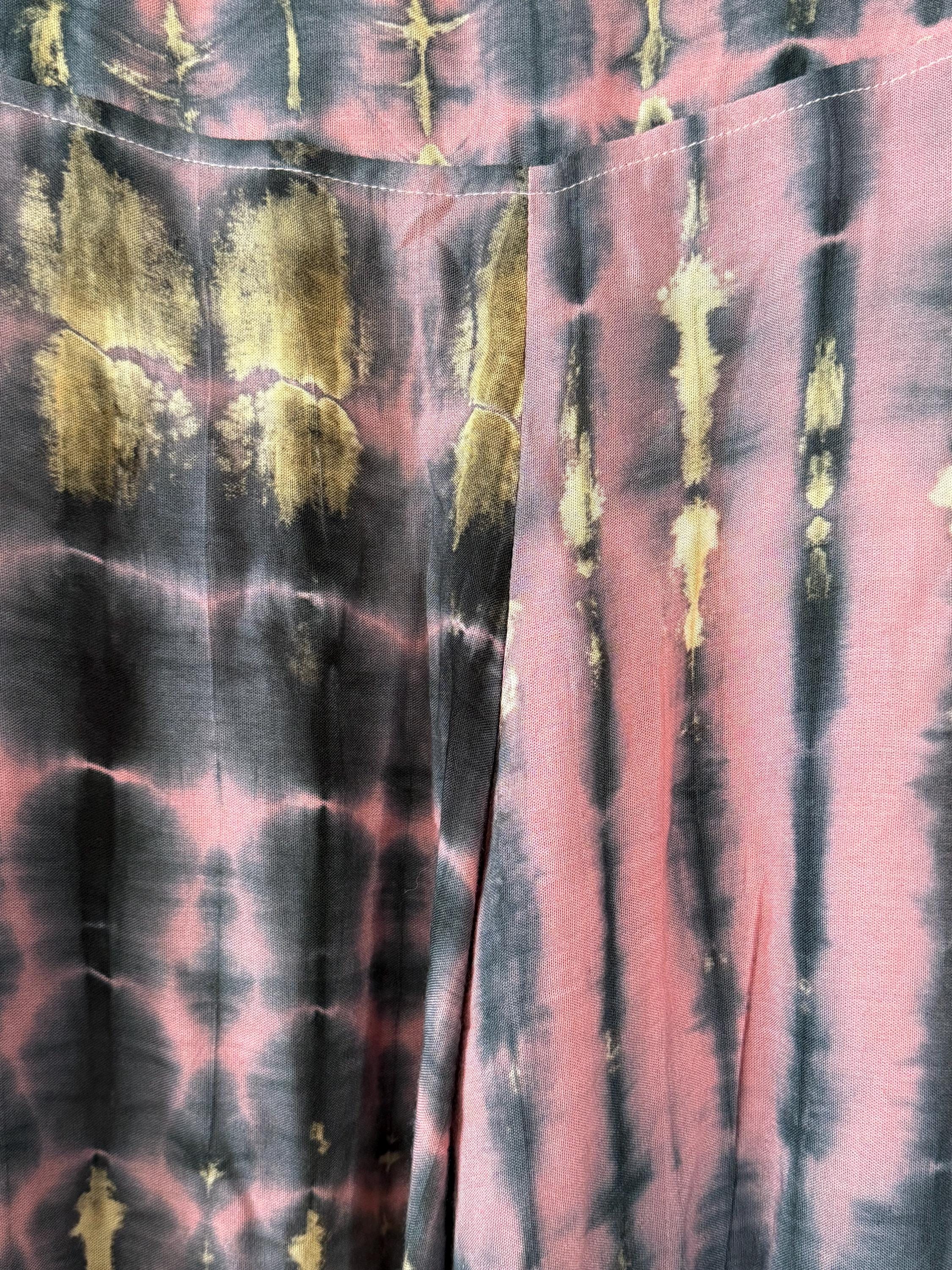 Step into effortless boho style with these unique tie-dye pants, designed for comfort and individuality. Made from soft, breathable cotton, they feature wide asymmetric legs with a playful split that flows beautifully as you move – perfect for festivals, beach days, or everyday bohemian living.