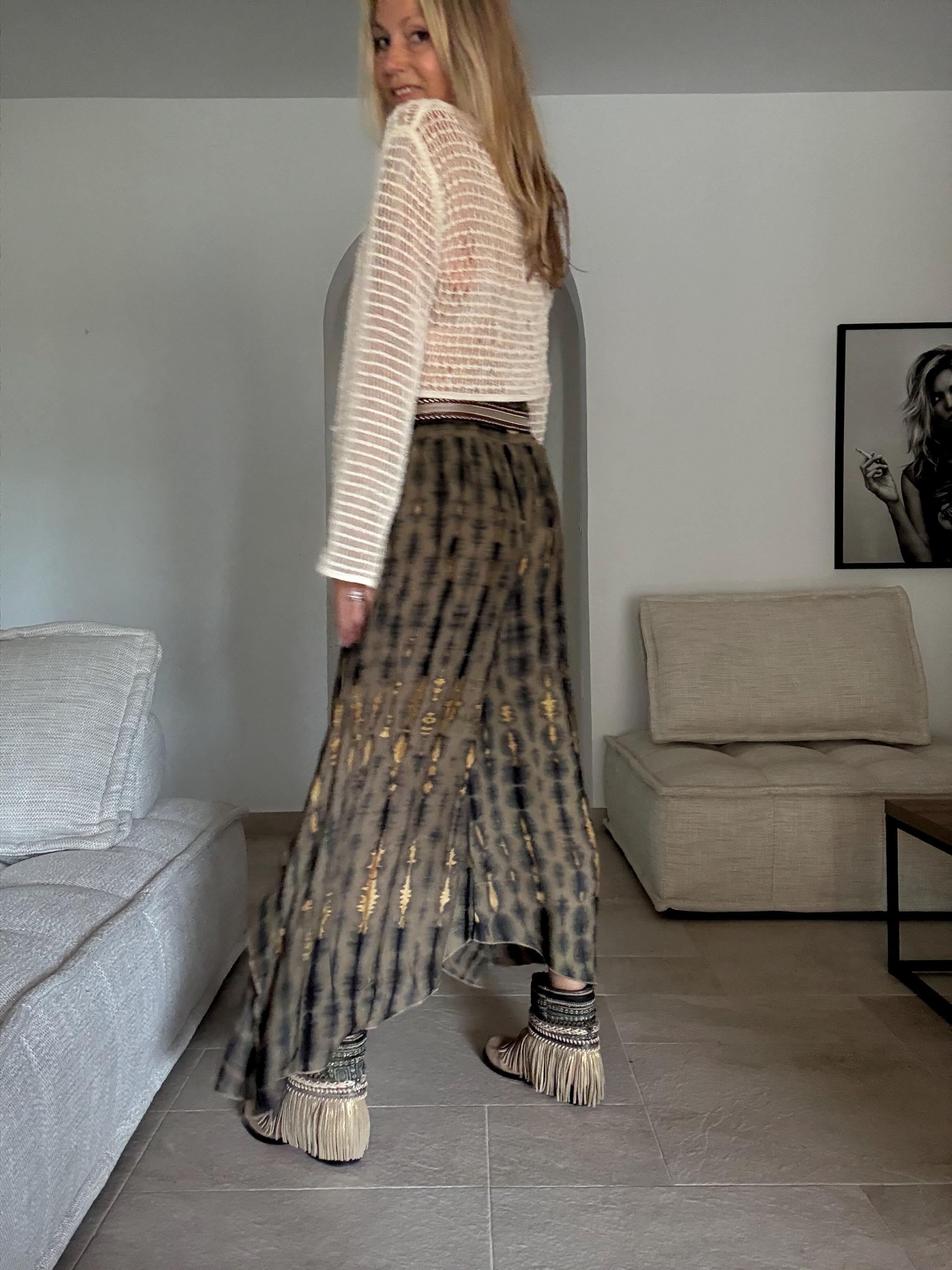 Step into effortless boho style with these unique tie-dye pants, designed for comfort and individuality. Made from soft, breathable cotton, they feature wide asymmetric legs with a playful split that flows beautifully as you move – perfect for festivals, beach days, or everyday bohemian living.