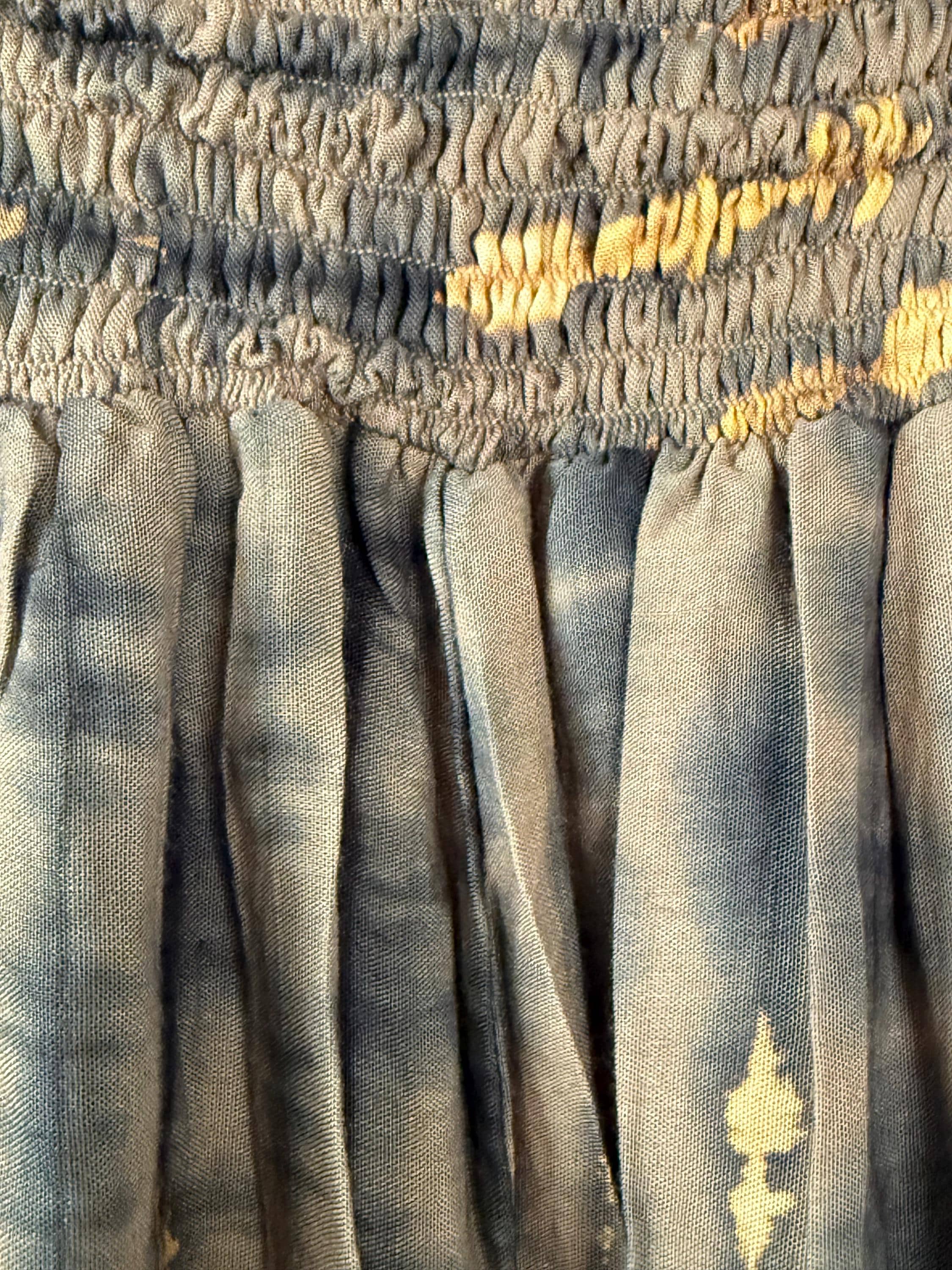 The elastic back waistband ensures a comfortable, flexible fit that adapts to your shape, while the hand-dyed tie-dye pattern makes every piece one-of-a-kind.