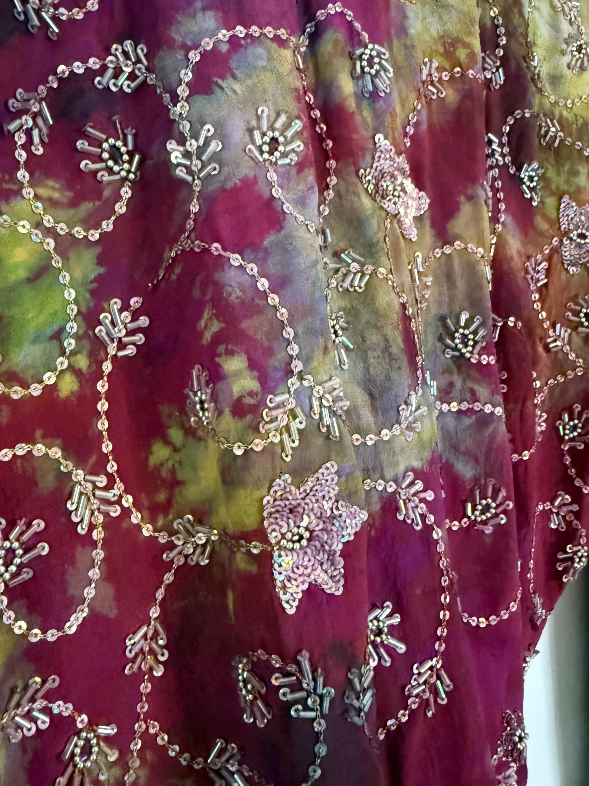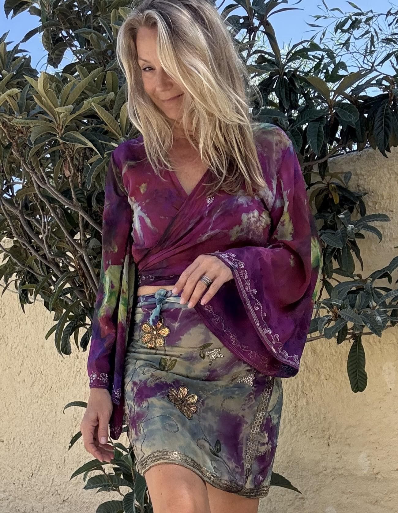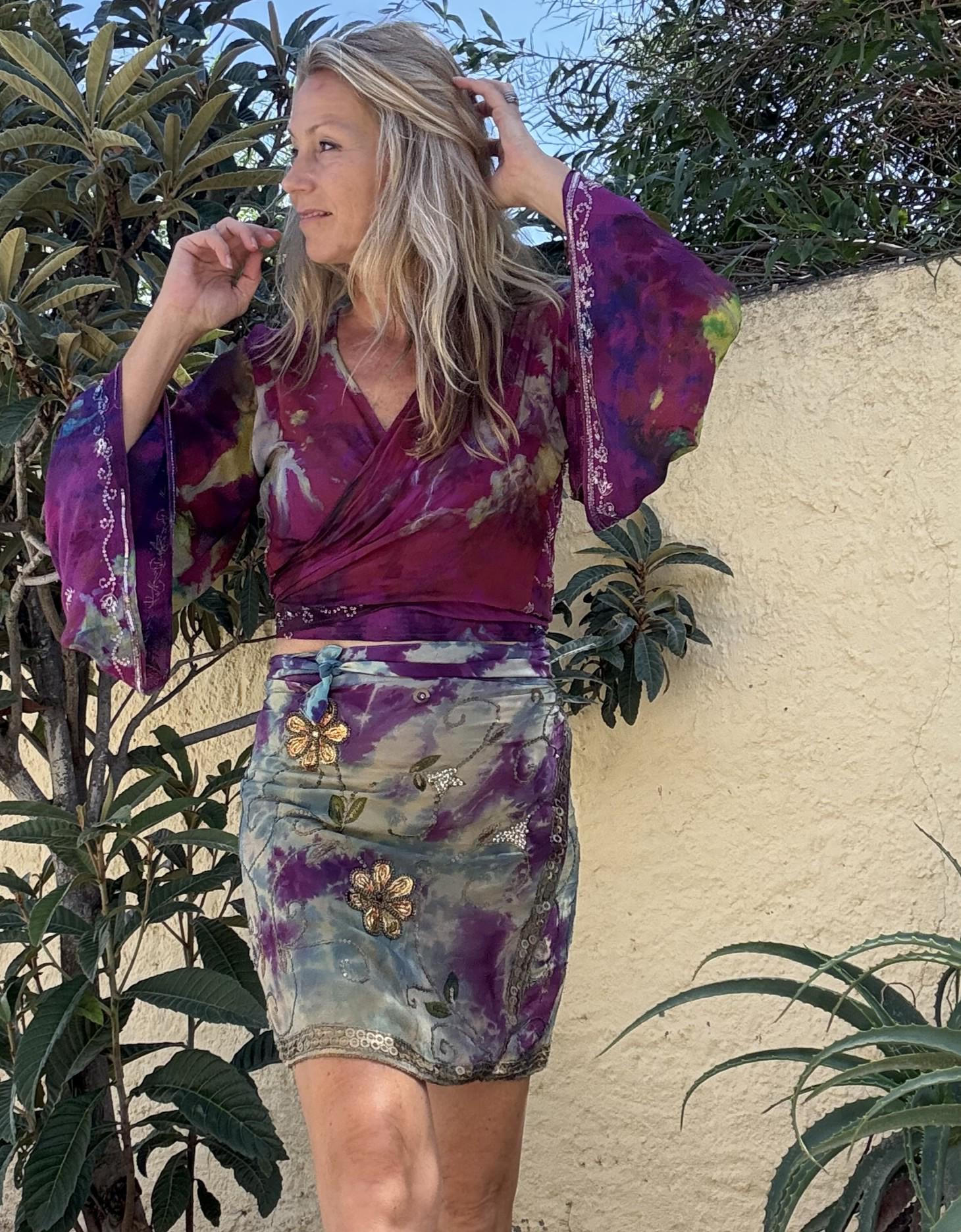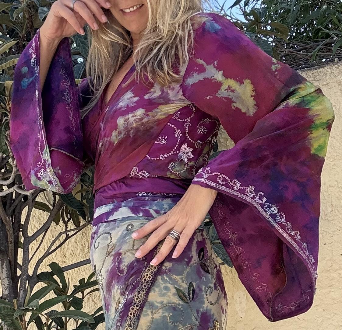 Handmade recycled Sari wrap top with bell sleeves with lots of sequins and embellishments Dress it up with on a dress, or dress it down on a jeans, depending on the occasion.