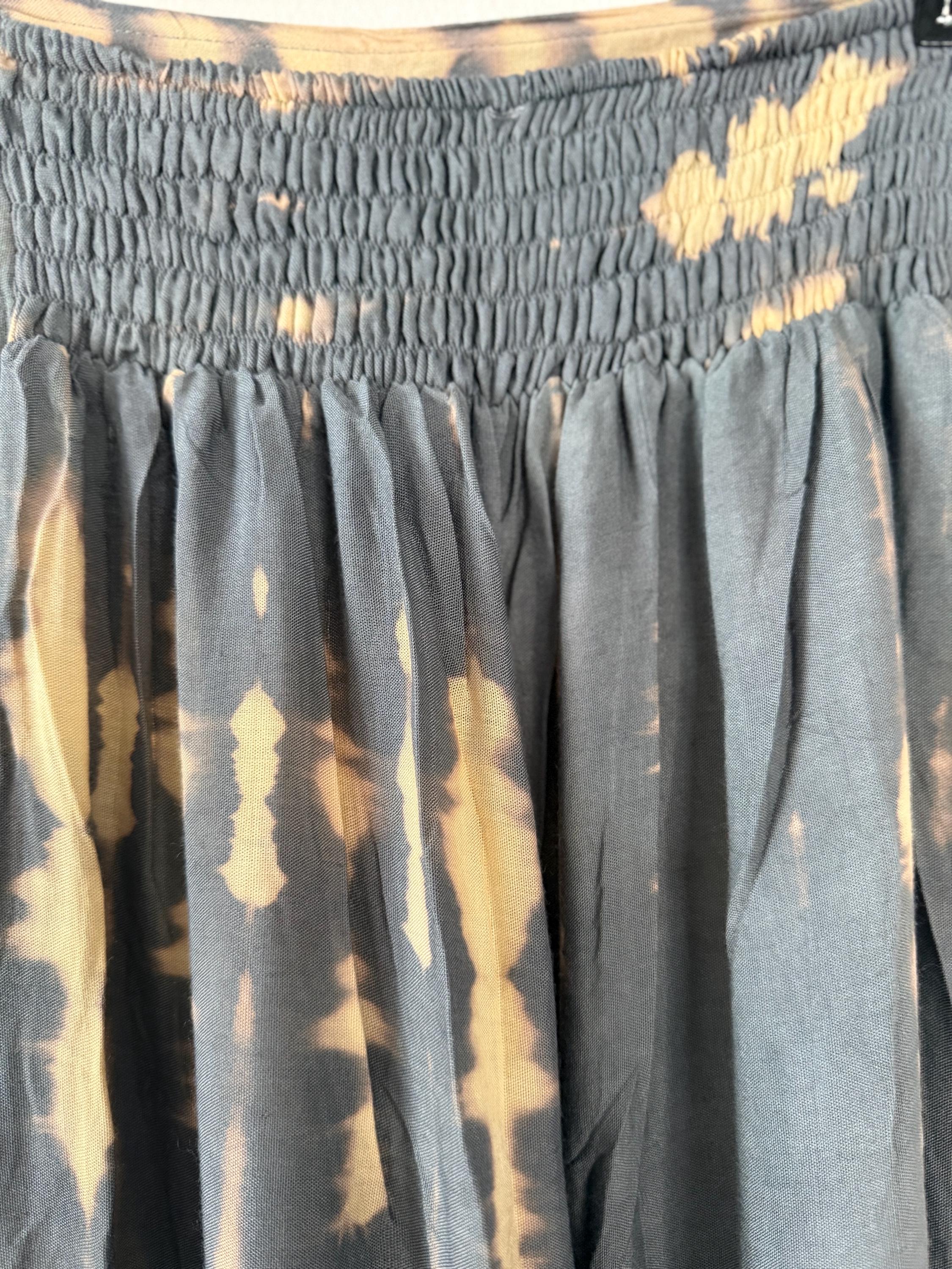 The elastic back waistband ensures a comfortable, flexible fit that adapts to your shape, while the hand-dyed tie-dye pattern makes every piece one-of-a-kind.