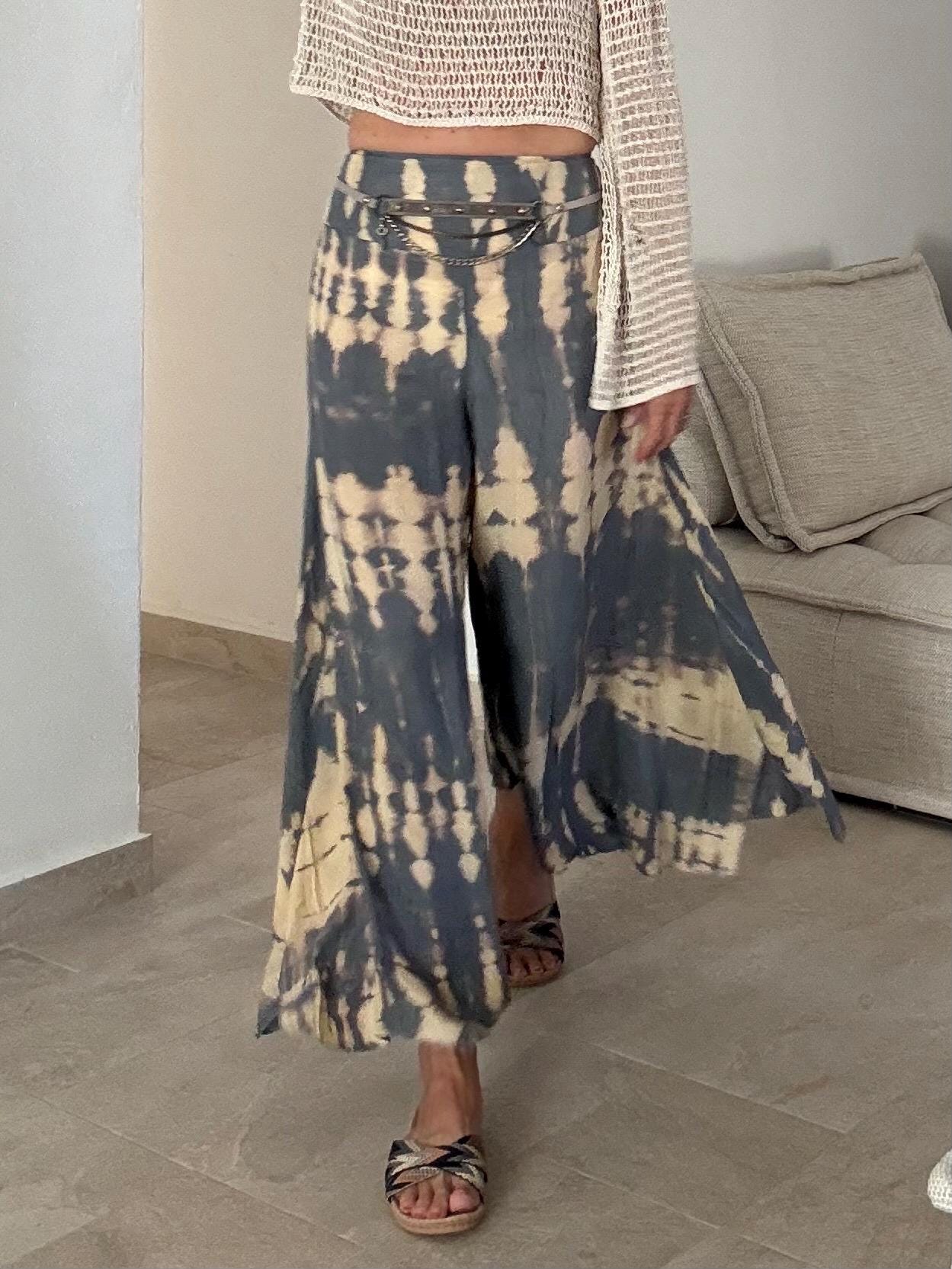 🌿 Bohemian Tie-Dye Pants – Wide Asymmetric Legs with Split | Soft Cotton