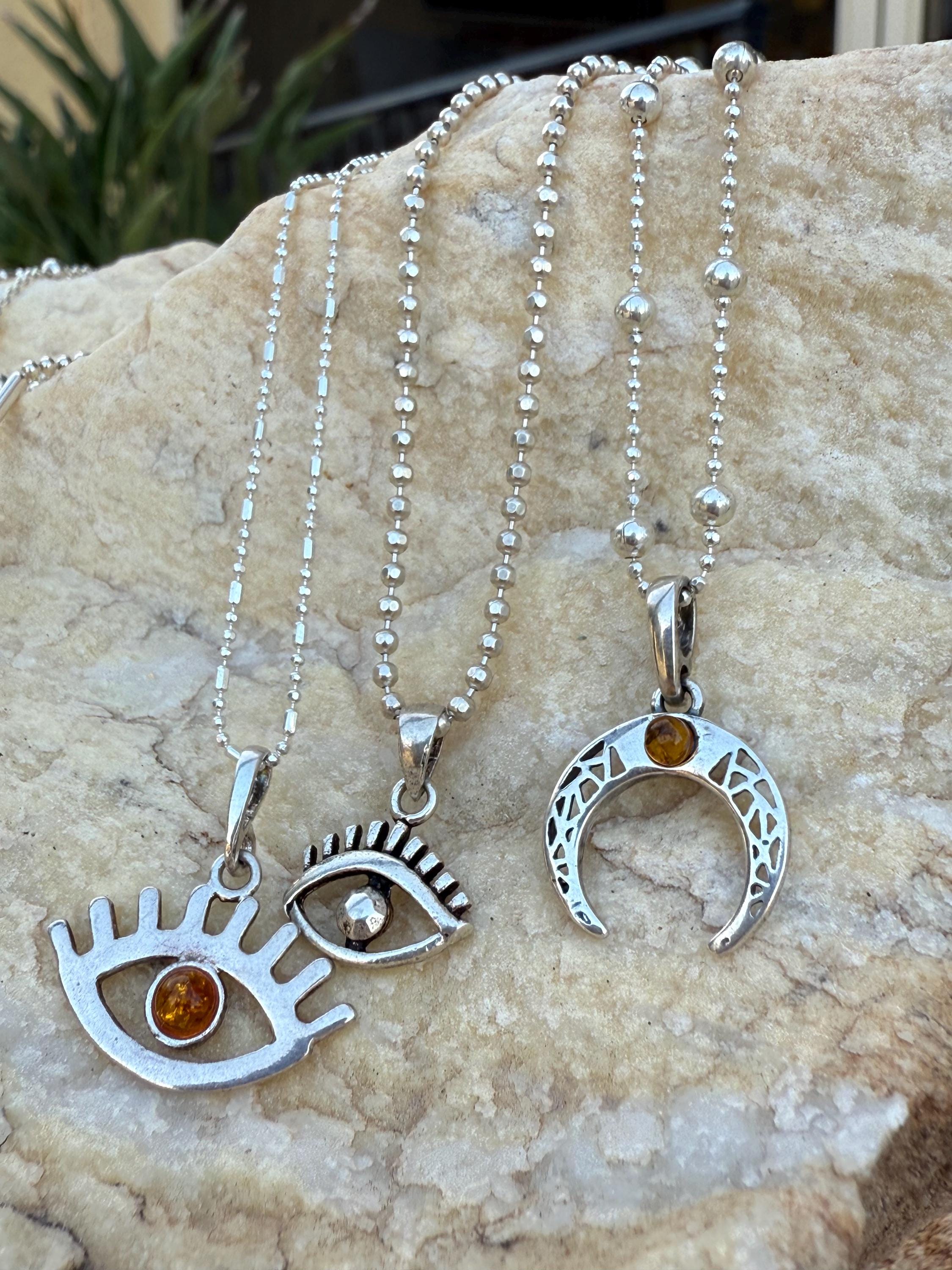 The evil eye is an ancient symbol believed to ward off negativity and attract harmony, while amber radiates warmth and grounding energy. Together, they create a meaningful piece that blends spiritual symbolism with timeless style.