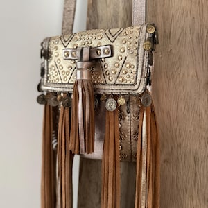 This is a leather statement piece for the cowgirls and bohemian lovers!