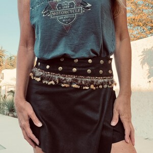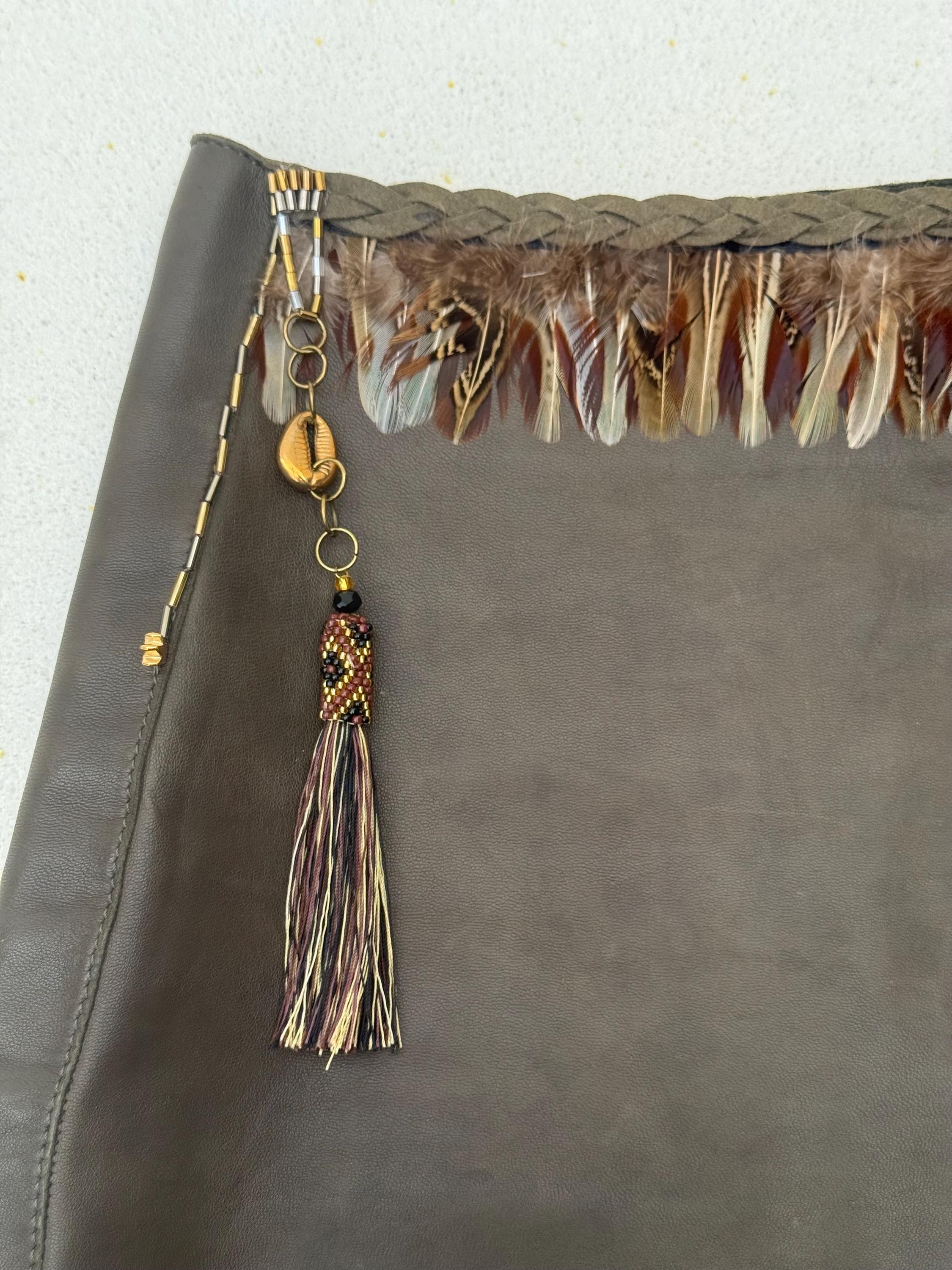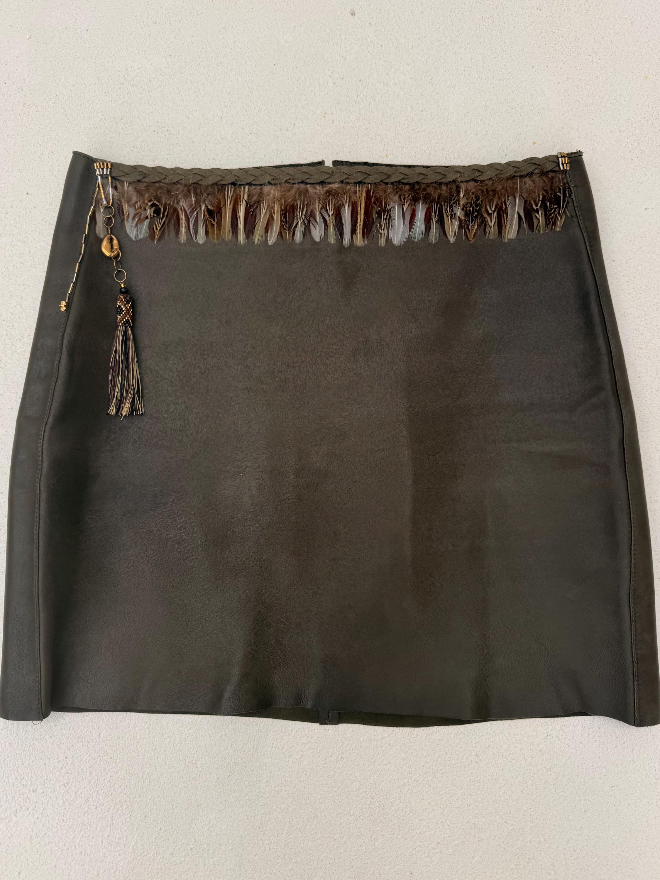 Warm tones and raw textures define Wild Ember. This butter soft leather skirt radiates strength, passion, and individuality. Its earthy color palette makes it easy to combine, while the handcrafted finish ensures every piece is unique. Perfect for those who carry fire within and love bold, natural style.
