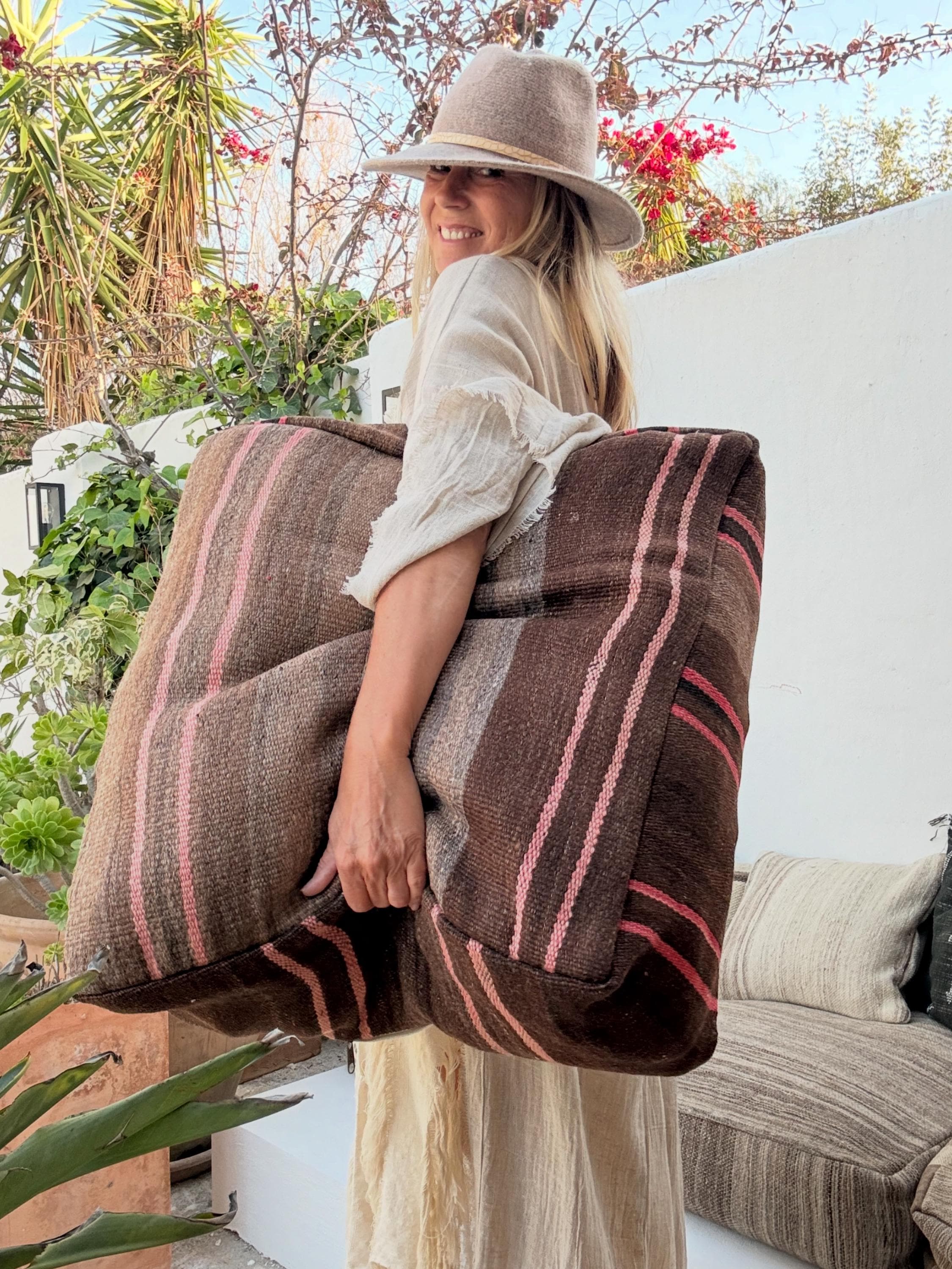 Moroccan kilim pouf / Big floor pillow / Vintage textile pouf / Handmade Moroccan poof / 100% wool / 60x60x25cm
