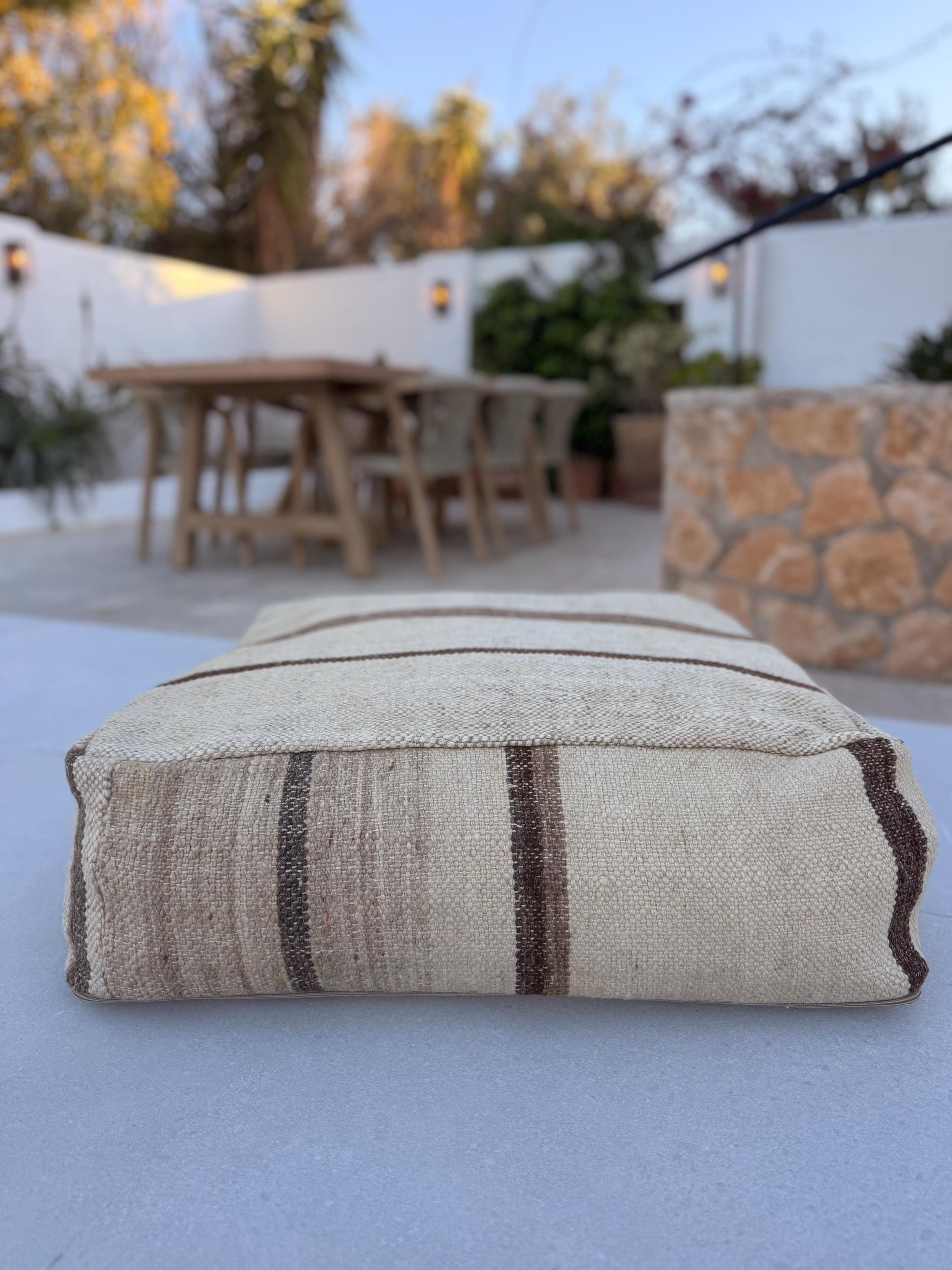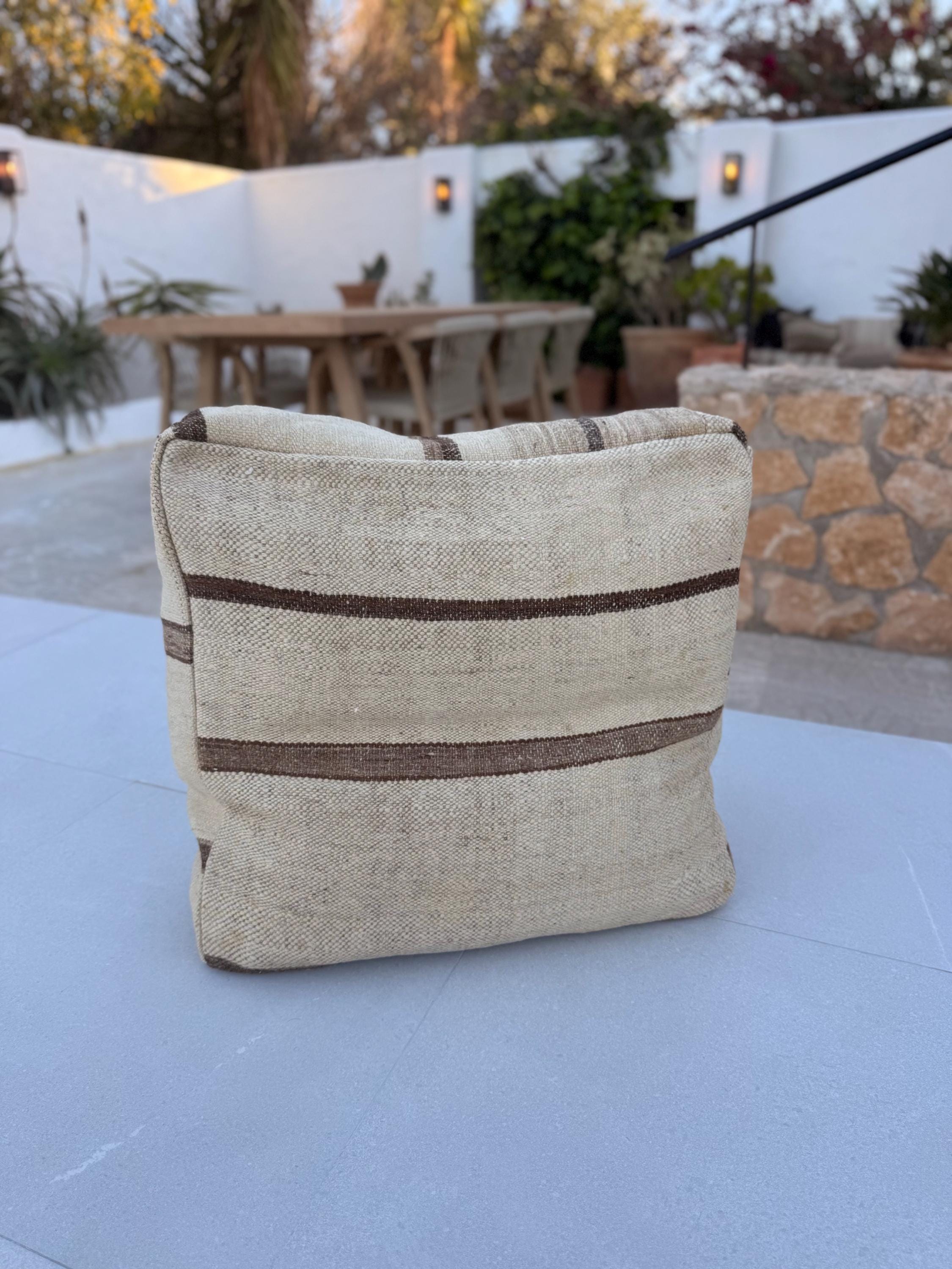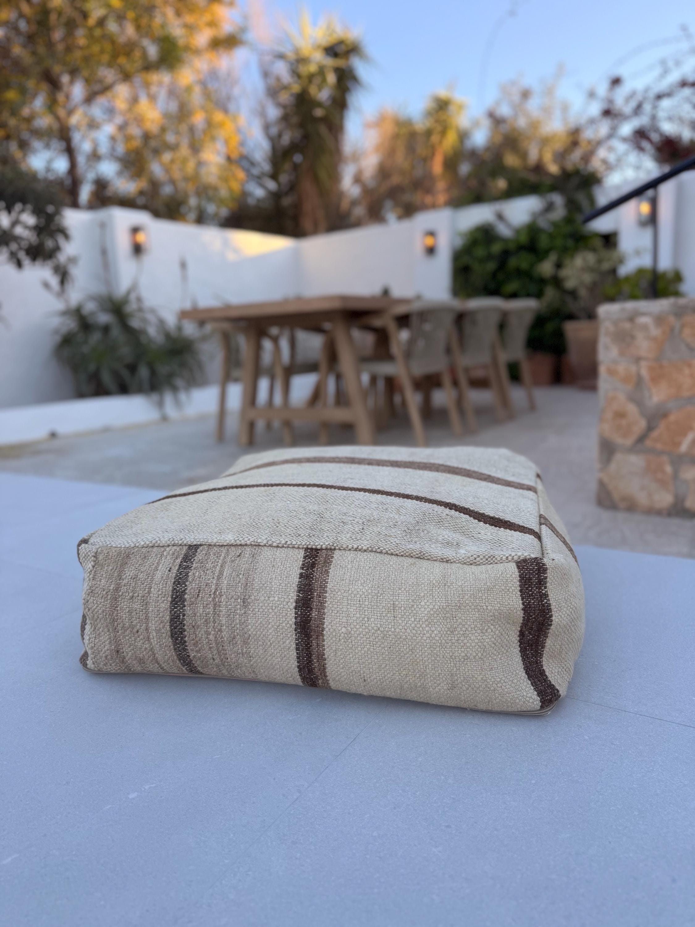 Moroccan kilim pouf / Big floor pillow / Handmade Moroccan poof / 100% wool kilim / 60x60x25cm