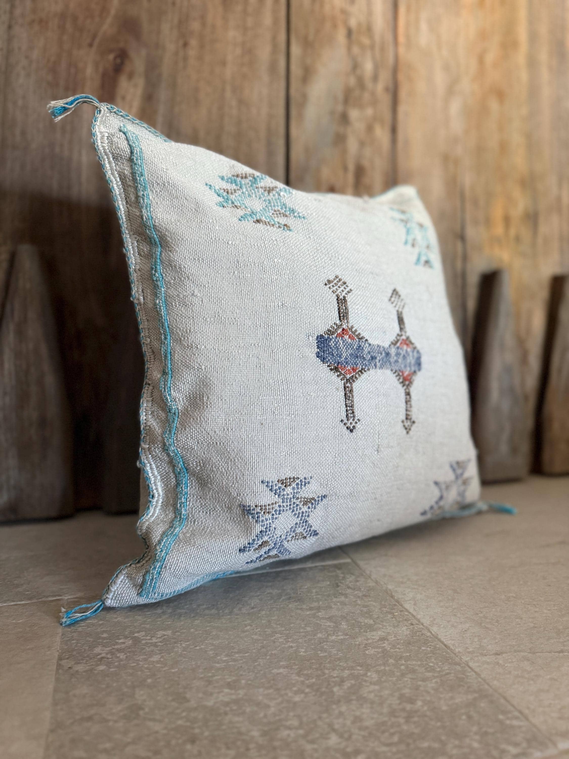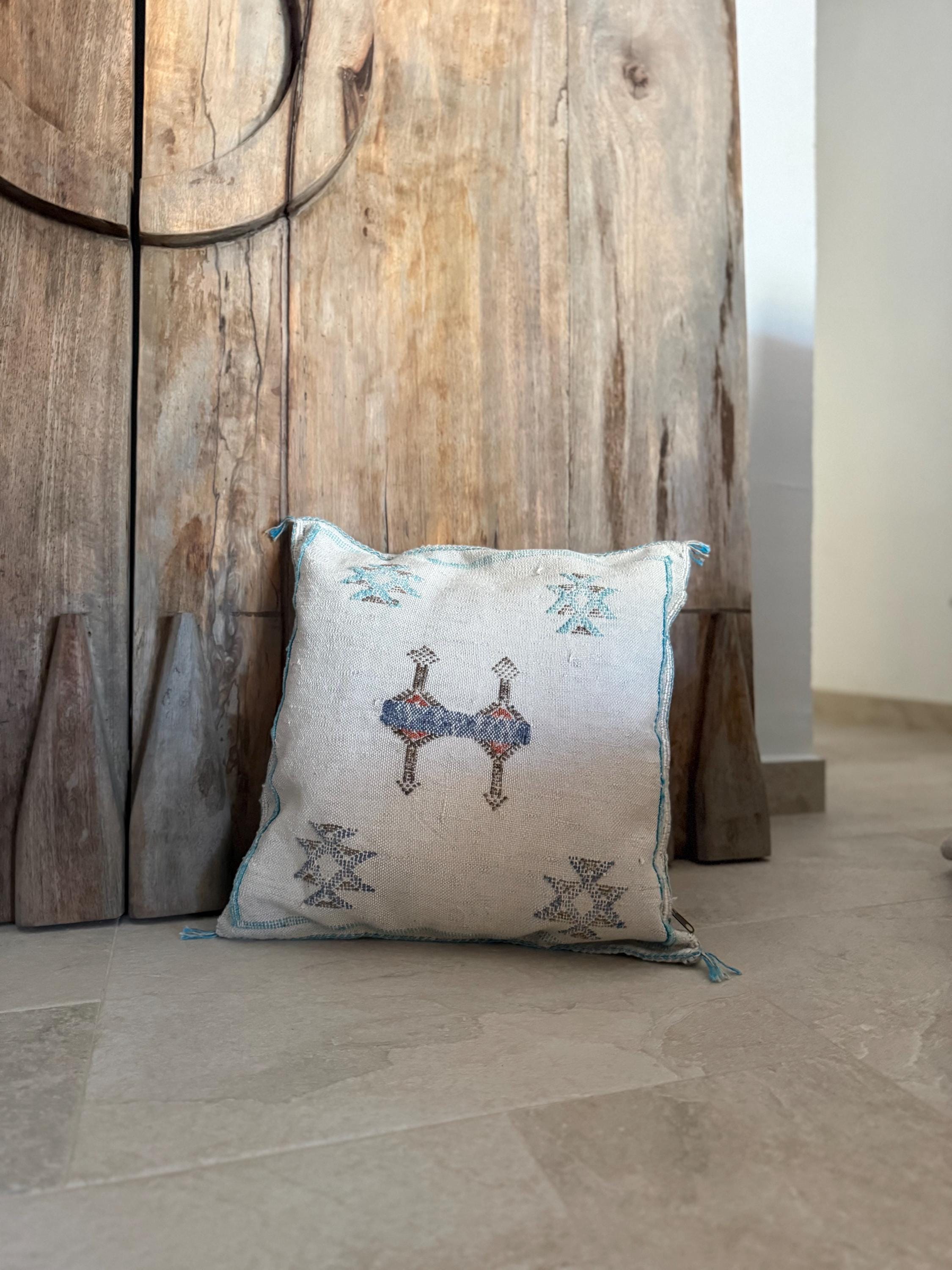 Made from Sabra silk (also known as cactus silk), the fabric has a soft, slightly matte sheen with a rich, tactile feel. The silky beige/greytone adds contrast and elegance, making it perfect for both minimal and layered bohemian interiors.
